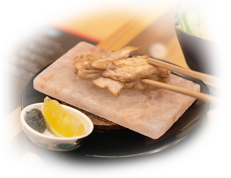 当店の自慢は、何といっても大山産がいなどりを使用したこだわりの創作鶏料理。中でも名物の「岩塩焼き」は、ピンク色の岩塩プレートで焼き上げ程よく塩味がついた、おすすめの一品。様々な部位がございますので、是非その日のおすすめをスタッフにお尋ねください。